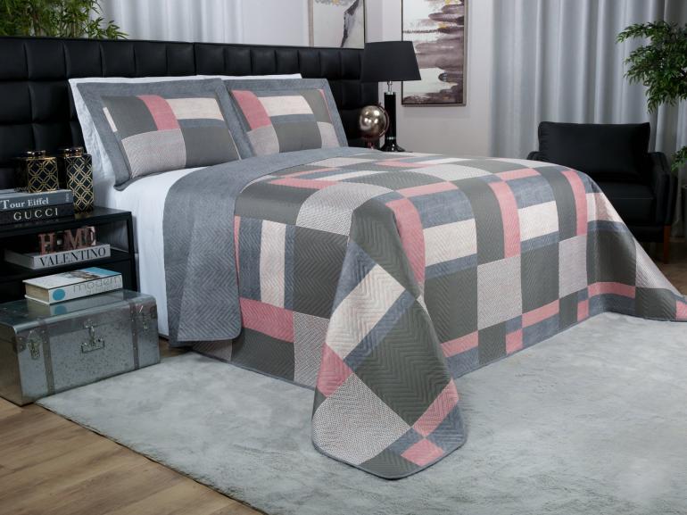 O cobre-leito é um edredom fino matelassado, ideal para todas as estações, proporcionando conforto e elegância ao quarto.