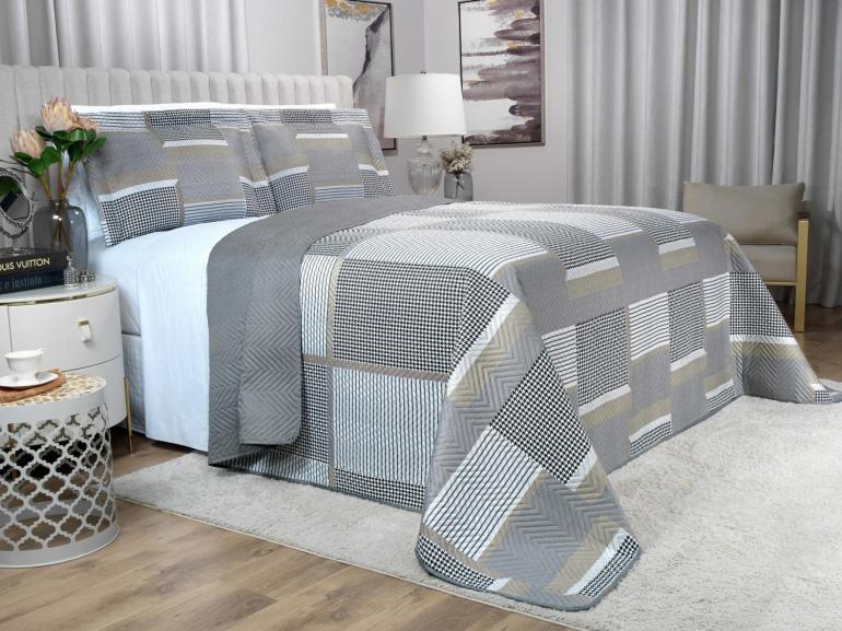 O cobre-leito funciona como um edredom fino matelassado, ideal para todas as estações, proporcionando conforto, leveza e elegância.