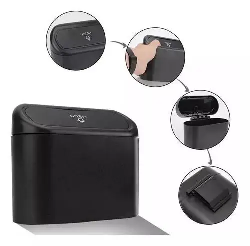 Por que escolher este modelo? Com um design inteligente e requintado, ela se adapta a diversos modelos de veículos. Seu sistema de fixação por gancho destacável permite que você a instale no local mais conveniente: seja no porta-objetos da porta, no console central ou até no encosto dos bancos. A tampa com sistema mola (flip-up) garante que o lixo fique escondido e o ambiente livre de odores, facilitando o descarte rápido enquanto você dirige.
